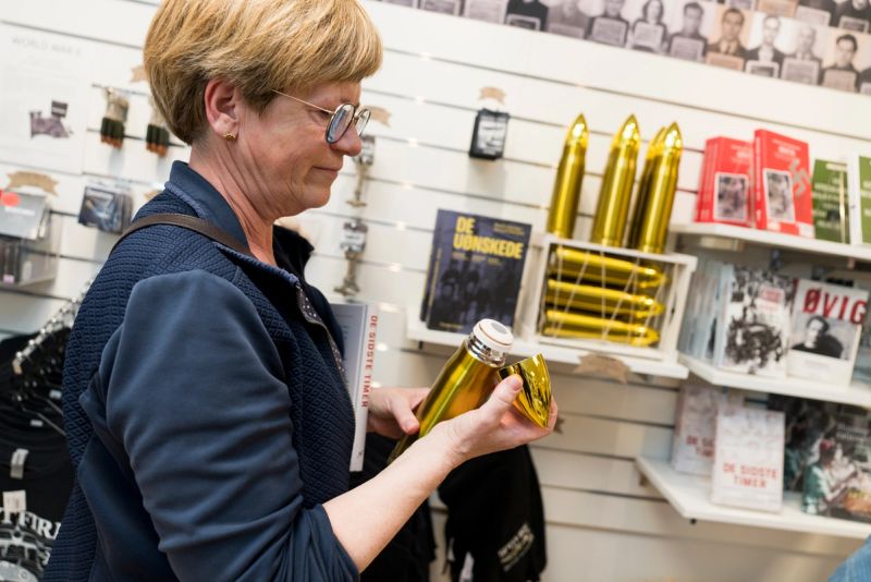 In the museum shop, you will find carefully selected souvenirs directly related to the Frøslev and Faarhus camps. Playing cards with motifs designed by the prisoners themselves, hand-carved Frø-sleve (a type of wooden spoon) and coffee from the occupation period bring you closer to the time during and after World War II. On the shelves, you will find non-fiction books about the period and the camp, quiz games for the curious, and sweet treats for those feeling peckish. The shop is in barrack H6, where you will also find the ticket office.